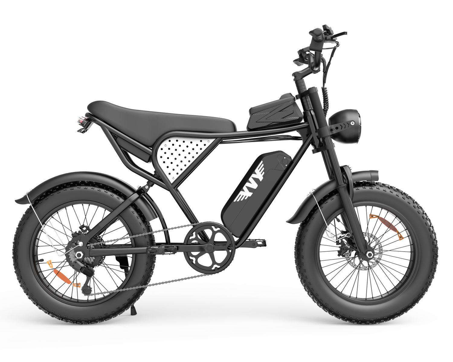 The YVY C20(Q20) Lite e-bike runs on a 48V 15Ah battery, which can travel up to 30 miles per charge in pure e-bike mode. It only takes 7-8 hours to fully charge, and the battery is removable for added convenience.