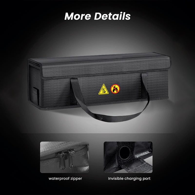 Sécurité et tranquillité d'esprit : les matériaux ignifuges haute performance garantissent une charge plus sûre et offrent un environnement de stockage optimal pour les batteries Lipo pendant le transport et le stockage. Le matériau hybride à quatre couches, antidéflagrant et résistant à la chaleur, est robuste et fiable, tandis que le revêtement en silicone étanche protège la batterie de l'eau. Vous pouvez ainsi protéger vos biens à tout moment.