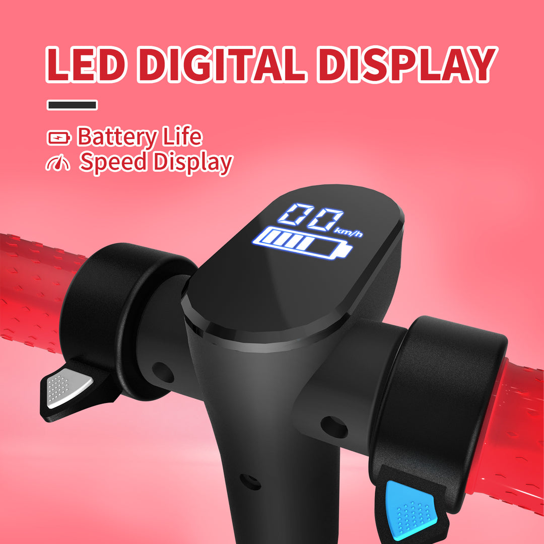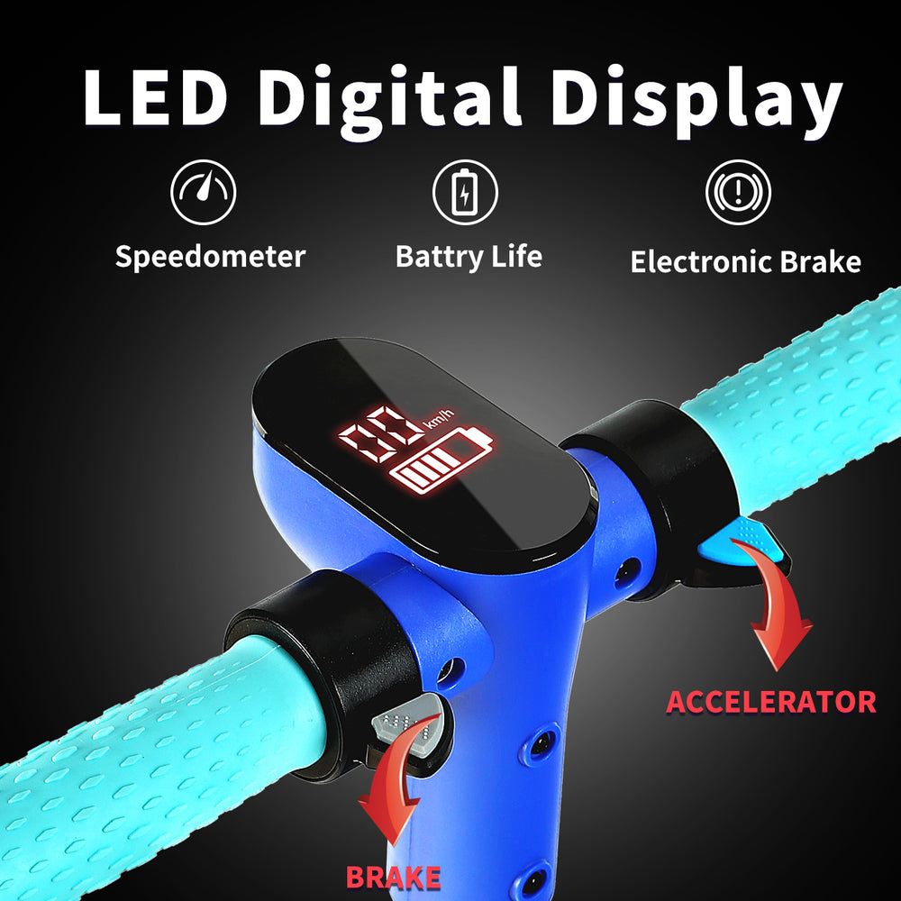 Écran LED et batterie longue durée - Trottinette électrique SIMATE pour enfants avec moteur sans balais de 130 W et batterie lithium-ion rechargeable de 60 Wh, autonomie maximale de 8,3 km, vitesse de 14 km/h et inclinaison de 10°, pour une conduite plus agréable. L'écran LED affiche clairement le niveau de batterie et la vitesse de conduite, vous tenant informé de l'état du véhicule.