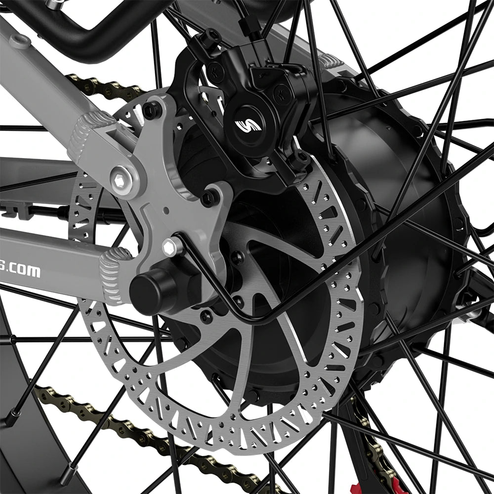 Les freins hydrauliques doubles offrent d'excellentes performances de freinage et un excellent contrôle au vélo électrique Shengmilo S600 2000 W. Grâce à une modulation fluide et une force de freinage précise, ces freins inspirent confiance au cycliste. Ils assurent une performance constante pour plus de sécurité dans les conditions difficiles. Faciles à installer et à régler, ils peuvent être mis à niveau ou remplacés. Globalement, les freins hydrauliques améliorent l'efficacité du freinage, la sécurité et l'expérience de conduite des propriétaires de vélos électriques Shengmilo S600 à double moteur.