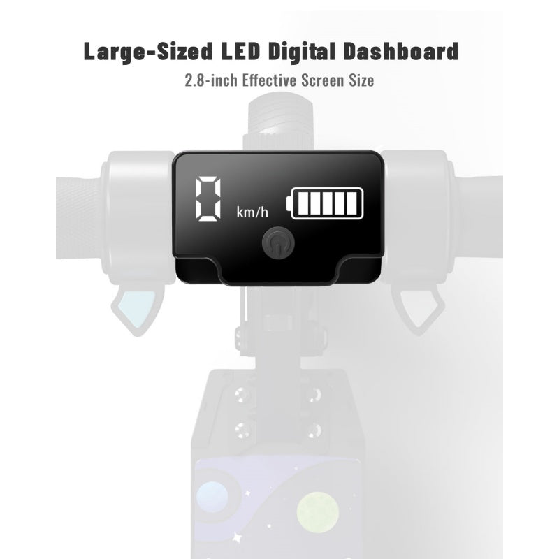 Trottinette électrique avec moteur sans balais de 130 W et batterie rechargeable de 24 V/2,5 Ah, lui permettant de parcourir jusqu'à 8 miles avec une charge complète et de durer 40 à 60 minutes (selon les conditions de route ou le poids des enfants). Le temps de charge complet n'est que de 2 à 3 heures, ce qui rend la conduite des enfants plus amusante et plus durable. L'écran LED affiche clairement le niveau de la batterie, le mode de vitesse et la vitesse de conduite, tenant les enfants informés de l'état du véhicule.