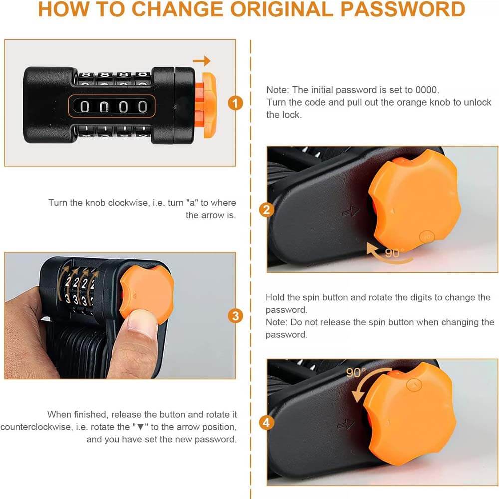 The 4-digit security bicycle lock has 10,000 combination combinations that take longer to crack. And, because you won't have to carry a key with you, using a combination lock will be simpler and faster. Of course, you must remember the combination or take a picture with your phone in case you forget!